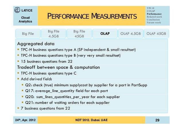 Hadoop Scalability and Performance Testing in Heterogeneous Clusters Fernando G assessing the performance of the cluster/Hadoop installation performance, and the average I/O speed. Basically, TerstDFSIO is useful for: Measurement tasks such as stress tests on HDFS. Discovering ... View Doc