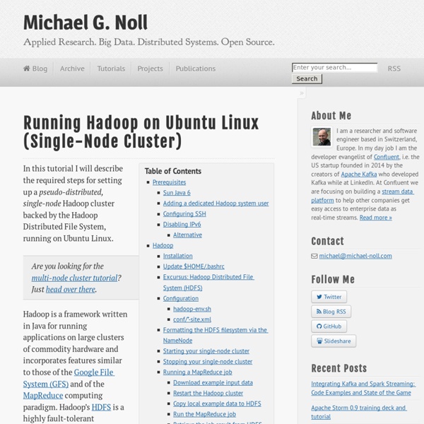 EDUREKA Apache Hadoop 2.0 Installation and Single Node Cluster Configuration on Ubuntu A guide to install and setup Single-Node Apache Hadoop 2.0 Cluster ... Read Here